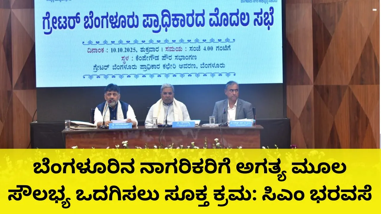 Greater Bengaluru Authority: ಬೆಂಗಳೂರಿನ ಕೆಂಪೇಗೌಡ ಪೌರ ಸಭಾಂಗಣದಲ್ಲಿ ಶುಕ್ರವಾರ ಗ್ರೇಟರ್ ಬೆಂಗಳೂರು ಪ್ರಾಧಿಕಾರದ ಮೊದಲ ಸಭೆ ನಡೆಯಿತು. ಈ ವೇಳೆ ಮುಖ್ಯಮಂತ್ರಿ ಸಿದ್ದರಾಮಯ್ಯ ಮಾತನಾಡಿ, ಬೆಂಗಳೂರಿನ ನಾಗರಿಕರಿಗೆ ಅಗತ್ಯ ಮೂಲ ಸೌಲಭ್ಯ ಒದಗಿಸಲು, ಸಂಚಾರ ದಟ್ಟಣೆ ಕಡಿಮೆ ಮಾಡಲು ಕ್ರಮ ಕೈಗೊಳ್ಳಲು ಸೂಚಿಸಿದರು.