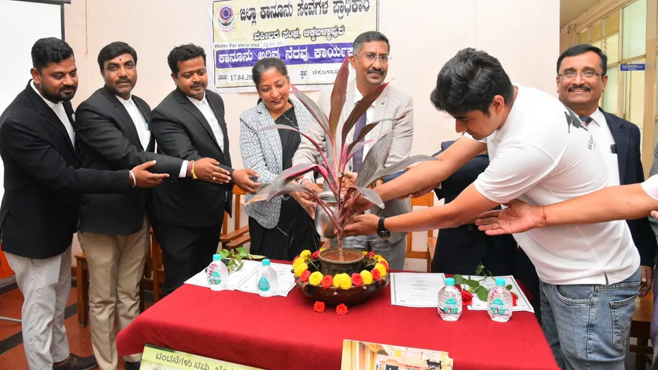 ಚಿಕ್ಕಬಳ್ಳಾಪುರ ನ್ಯಾಯಾಲಯದ ಆವರಣದಲ್ಲಿ ಜಿಲ್ಲಾ ಕಾನೂನು ಸೇವೆಗಳ ಪ್ರಾಧಿಕಾರ, ವಕೀಲರ ಸಂಘ ಚಿಕ್ಕಬಳ್ಳಾಪುರ ಹಾಗೂ ವಾಟರ್ ಫಾರ್ ವಾಯ್ಸ್ಲೆಸ್ ಸಂಸ್ಥೆ ಇವರ ಸಂಯುಕ್ತಾಶ್ರಯದಲ್ಲಿ ಶುಕ್ರವಾರ ವಿಶ್ವ ಜಲ ದಿನದ ಅಂಗವಾಗಿ ಆಯೋಜಿಸಿದ್ದ ಕಾರ್ಯಕ್ರಮಕ್ಕೆ ಚಾಲನೆ ನೀಡಿ ಮಾತನಾಡಿದರು.