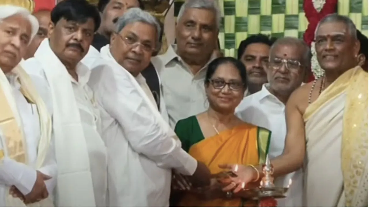 ಸಿಎಂ ಸಿದ್ದರಾಮಯ್ಯ ಚಾಮುಂಡಿ ಬೆಟ್ಟದಲ್ಲಿ ಈಡುಗಾಯಿ ಒಡೆದರು. ಅರ್ಚಕರು ಪೂಜೆ ಸಲ್ಲಿಸಿ ಸಿಎಂ ಸಿದ್ದರಾಮಯ್ಯ ಹಾಗೂ ಬಾನು ಮುಷ್ತಾಕ್ ಅವರಿಗೆ ಸನ್ಮಾನಿಸಿದರು. ನಾಡದೇವಿಗೆ ಬಾನು ಮುಷ್ತಾಕ್ ಅವರು ಪೂಜೆ ಸಲ್ಲಿಸಿ ಭಕ್ತಿಯಿಂದ ಭಾಗಿಯಾಗಿ ಮಹಾಮಂಗಳಾರತಿ ಸ್ವೀಕರಿಸಿದರು. ದೇವಿಯ ದರ್ಶನ ಪಡೆದು ಭಾವುಕರಾದರು.