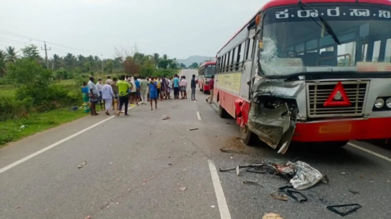 ಮಂಡ್ಯ ಜಿಲ್ಲೆಯ ಮಳವಳ್ಳಿಯ ಬಾಚನಹಳ್ಳಿ ಸಮೀಪ ಘಟನೆ ನಡೆದಿದ್ದು, ಮಳವಳ್ಳಿ ಮಾರ್ಗವಾಗಿ ಮಹದೇಶ್ವರನ ಬೆಟ್ಟಕ್ಕೆ ತೆರಳುತ್ತಿದ್ದ ಕೆಎಸ್ಆರ್ಟಿಸಿ ಬಸ್ ಹಾಗೂ ಕೊಳ್ಳೆಗಾಲ ಕಡೆಯಿಂದ ಮಳವಳ್ಳಿಗೆ ಬರುತ್ತಿದ್ದ KSRTC ಬಸ್ ನಡುವೆ ಮುಖಾಮುಖಿ ಡಿಕ್ಕಿ ಸಂಭವಿಸಿದೆ. ಮೊದಲು ಎರಡು ಬಸ್ಸುಗಳ ನಡುವೆ ಮುಖಾಮುಖಿ ಡಿಕ್ಕಿ ಡಿಕ್ಕಿಯಾಗಿ ನಿಂತಿದ್ದ ಸಂದರ್ಭದಲ್ಲಿಯೇ ಮತ್ತೊಂದು ಬಸ್ ಬಂದು ಡಿಕ್ಕಿ ಹೊಡೆದಿದೆ.
