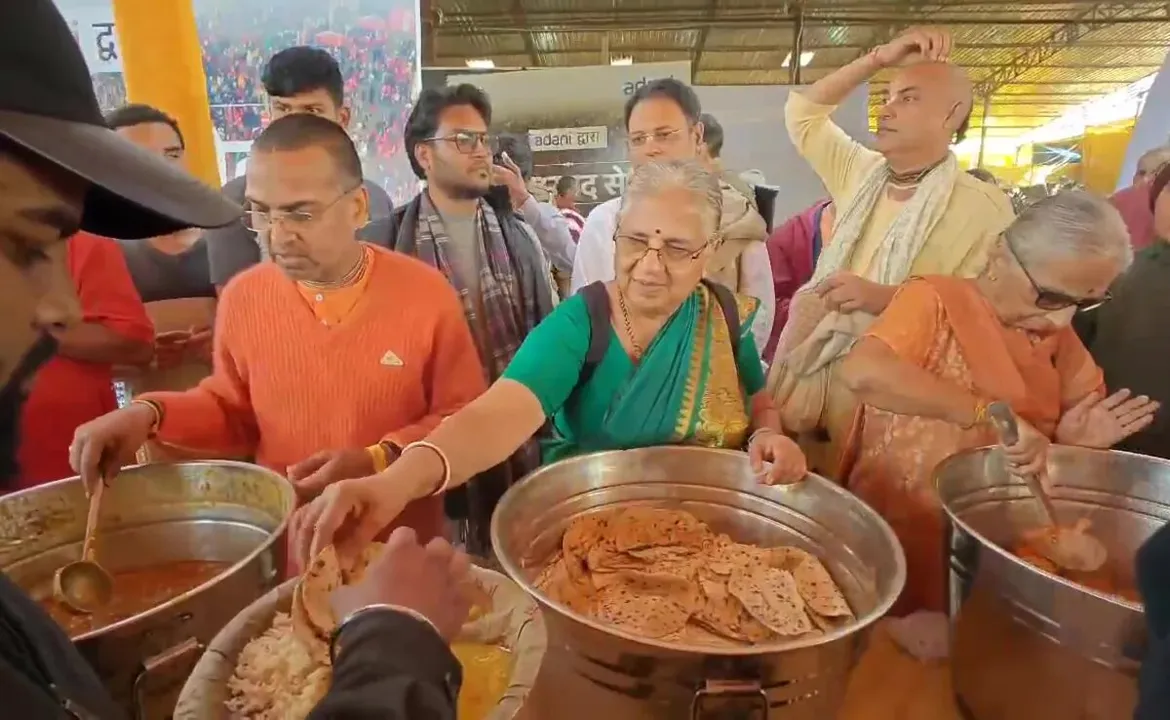 ಮಹಾಕುಂಭ ಮೇಳಕ್ಕೆ ಪ್ರತೀದಿನ ಆಗಮಿಸುವವರಿಗಾಗಿ ಮಹಾಪ್ರಸಾದದ ವ್ಯವಸ್ಥೆಯನ್ನು ಇಸ್ಕಾನ್ ಮಾಡುತ್ತಿದ್ದು, ಸುಧಾ ಮೂರ್ತಿ ಅವರು ಇಲ್ಲಿ ಮಹಾಪ್ರಸಾದವನ್ನು ಭಕ್ತರಿಗೆ ವಿತರಿಸಿ ಗಮನ ಸೆಳೆದಿದ್ದಾರೆ.