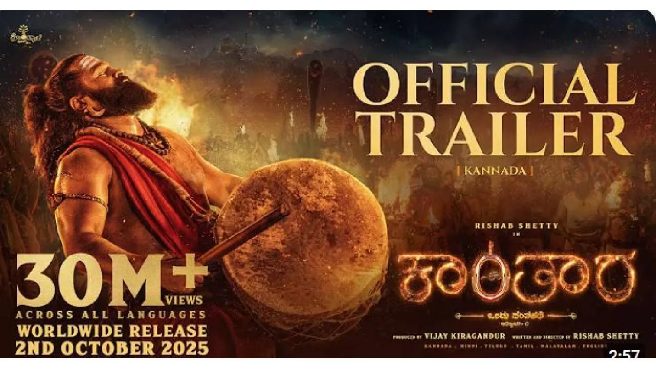 Kantara Chapter 1: ʼಕಾಂತಾರ ಚಾಪ್ಟರ್ 1ʼ ಚಿತ್ರದ ಬಹುನಿರೀಕ್ಷಿತ ಟ್ರೈಲರ್ ಕೊನೆಗೂ ರಿಲೀಸ್ ಆಗಿದೆ. ಚಿತ್ರದ ಬಿಡುಗಡೆಗೆ ದಿನಗಣನೆ ಆರಂಭವಾಗಿದ್ದು, ಸಿನಿಮಾ ತಂಡ ಮುನ್ನುಡಿಯಾಗಿ ಟ್ರೈಲರ್ ಬಿಡುಗಡೆ ಮಾಡಿದೆ. ವಿವಿಧ ಭಾಷೆಗಳಲ್ಲಿ ಟ್ರೈಲರ್ ಮೂಡಿ ಬಂದಿದ್ದು, ದಾಖಲೆಯ ವೀಕ್ಷಣೆ ಕಂಡಿದೆ.