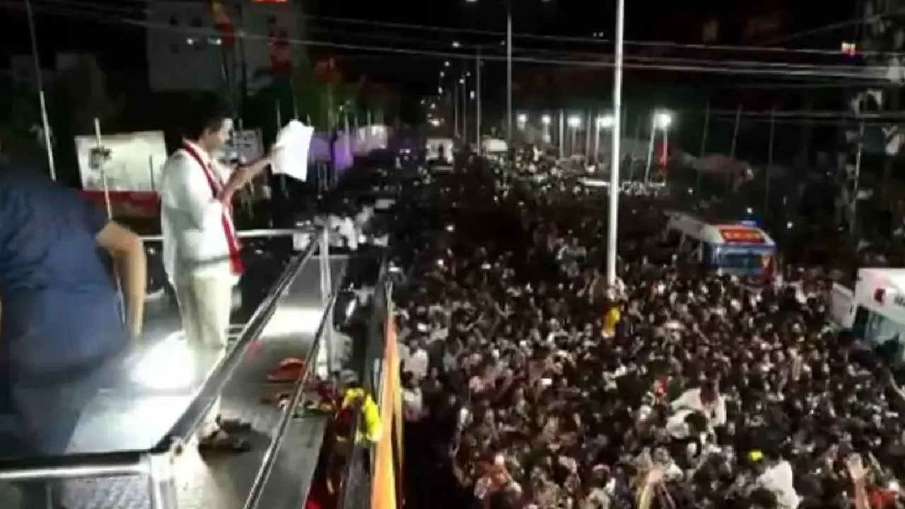 - ನಟನ ಬಸ್ ಚಲಿಸುತ್ತಿದ್ದಂತೆ ನೂರಾರು ಜನ ವಿಜಯ್ರನ್ನು ಹತ್ತಿರದಿಂದ ನೋಡಲು ಮುಗಿ ಬಿದ್ದಿದ್ದಾರೆ. ಆಗ ಈ ಕಾಲ್ತುಳಿತ ಸಂಭವಿಸಿದೆ.