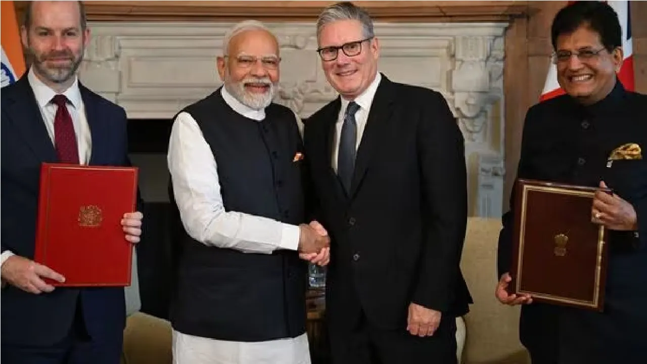 ಯುಕೆ ಮತ್ತು ಭಾರತದ ನಡುವಿನ ಬಹುನಿರೀಕ್ಷಿತ ಒಪ್ಪಂದಕ್ಕೆ ಭಾರತದ ವಾಣಿಜ್ಯ ಸಚಿವ ಪಿಯೂಷ್ ಗೋಯಲ್ ಮತ್ತು ಯುಕೆಯ ವ್ಯವಹಾರ ಮತ್ತು ವ್ಯಾಪಾರ ಕಾರ್ಯದರ್ಶಿ ಜೋನಾಥನ್ ರೆನಾಲ್ಡ್ಸ್ ಸಹಿ ಹಾಕಿದ್ದಾರೆ. ಇದರಿಂದ ಉಭಯ ದೇಶಗಳ ನಡುವಿನ ವ್ಯಾಪಾರವು ವಾರ್ಷಿಕ 34 ಶತಕೋಟಿ ಡಾಲರ್ಗೆ ಏರಿಕೆಯಾಗುವ ಸಾಧ್ಯತೆ ಇದೆ. ಪ್ರಧಾನಿ ನರೇಂದ್ರ ಮೋದಿಯವರ ಲಂಡನ್ ಭೇಟಿಯ ಸಮಯದಲ್ಲಿ ಈ ಒಪ್ಪಂದವನ್ನು ಔಪಚಾರಿಕವಾಗಿ ಅಂತಿಮಗೊಳಿಸಲಾಯಿತು.
