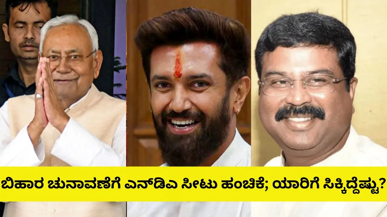 Bihar Election: ನವೆಂಬರ್ 6 ಮತ್ತು 11ರಂದು ನಡೆಯಲಿರುವ ಬಿಹಾರ ವಿಧಾನಸಭಾ ಚುನಾವಣೆಯ ಹಿನ್ನೆಲೆಯಲ್ಲಿ ರಾಜಕೀಯ ಚಟುವಟಿಕೆ ಗರಿಗೆದರಿದೆ. ಈ ಮಧ್ಯೆ ಎನ್ಡಿಎ ಮಿತ್ರಪಕ್ಷದೊಳಗಿನ ಸೀಟು ಹಂಚಿಕೆಯನ್ನು ಅಂತಿಮಗೊಳಿಸಿದೆ. ಯಾರಿಗೆ ಎಷ್ಟು ಸೀಟು ಸಿಕ್ಕಿದೆ ಎನ್ನುವ ವಿವರ ಇಲ್ಲಿದೆ.