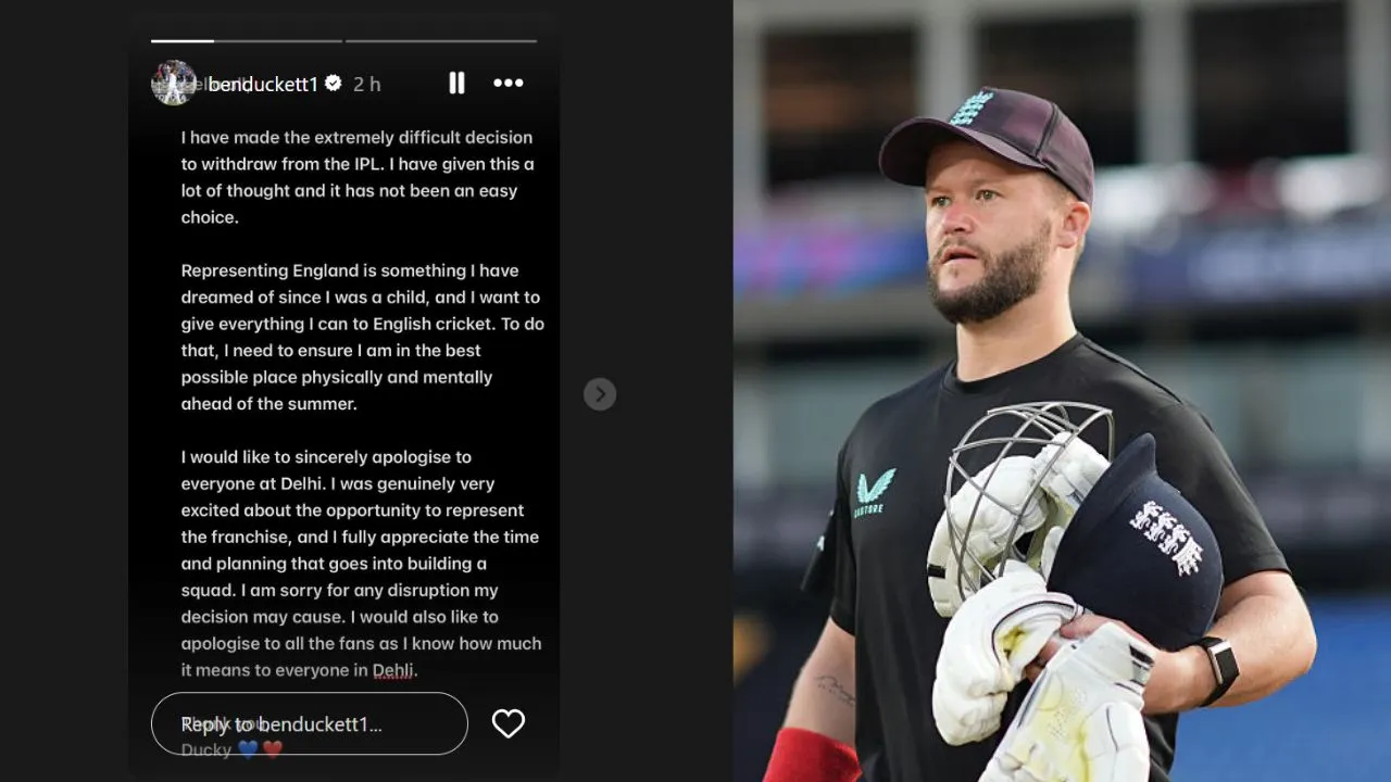 “ನಾನು ಐಪಿಎಲ್ ಟೂರ್ನಿಯಿಂದ ಹಿಂದೆ ಸರಿಯುವ ಅತ್ಯಂತ ಕಷ್ಟದ ನಿರ್ಧಾರವನ್ನು ತೆಗೆದುಕೊಂಡಿದ್ದೇನೆ. ಈ ಬಗ್ಗೆ ನಾನು ಸಾಕಷ್ಟು ಆಲೋಚಿಸಿದ್ದೇನೆ, ಇದು ಸುಲಭದ ಆಯ್ಕೆಯಾಗಿರಲಿಲ್ಲ,” ಎಂದು ಬೆನ್ ಡಕೆಟ್ ತಿಳಿಸಿದ್ದಾರೆ. ತಮ್ಮ ದೀರ್ಘಕಾಲೀನ ಗುರಿ ಇಂಗ್ಲೆಂಡ್ ತಂಡವನ್ನು ಉನ್ನತ ಮಟ್ಟದಲ್ಲಿ ಪ್ರತಿನಿಧಿಸುವುದೇ ಎಂದು ಅವರು ಹೇಳಿದ್ದಾರೆ.