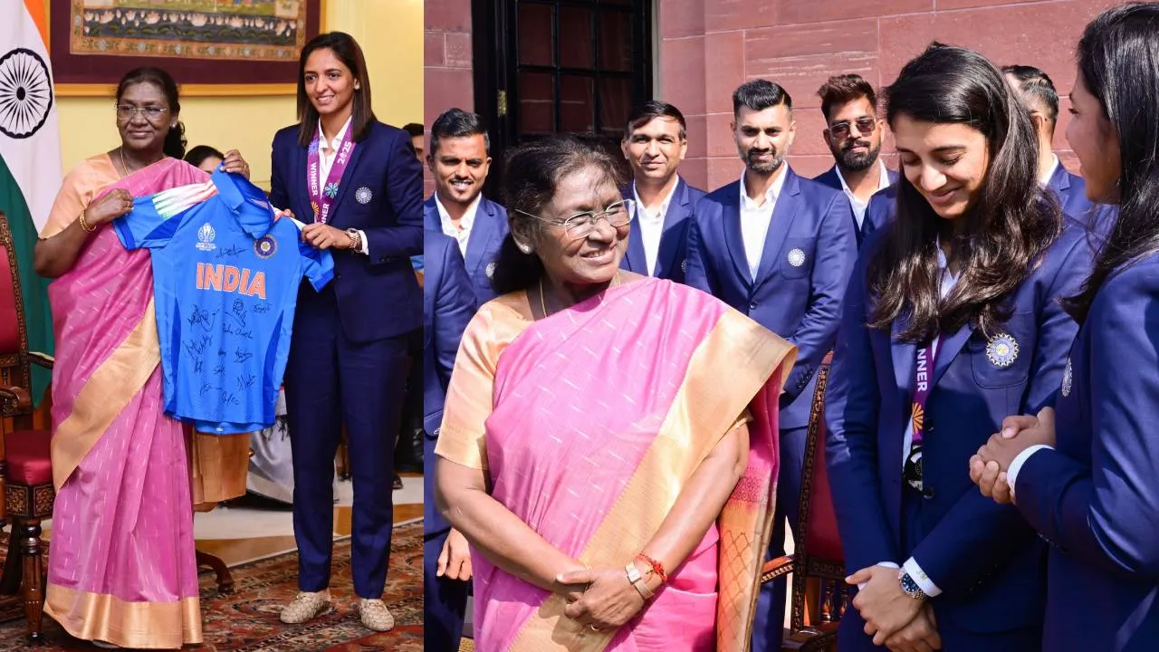 ರಾಷ್ಟ್ರಪತಿ ಅವರ ಜತೆಗೆ ಎಲ್ಲ 16 ಆಟಗಾರ್ತಿಯರು ಮತ್ತು ಮುಖ್ಯ ಕೋಚ್ ಅಮೋಲ್ ಮುಜುಮ್ದಾರ್, ಬಿಸಿಸಿಐ ಅಧ್ಯಕ್ಷ ಮಿಥುನ್ ಮನ್ಹಾಸ್ ಟ್ರೋಫಿಯೊಂದಿಗೆ ಪೋಸ್ ನೀಡಿದರು. ಮುರ್ಮು ತಂಡದ ಐತಿಹಾಸಿಕ ಸಾಧನೆಯನ್ನು ಶ್ಲಾಘಿಸಿದರು ಮತ್ತು ಯುವಜನರನ್ನು ಪ್ರೇರೇಪಿಸುವಲ್ಲಿ ಅವರ ಪಾತ್ರವನ್ನು ಎತ್ತಿ ತೋರಿಸಿದರು. ಬುಧವಾರ ಪ್ರಧಾನಿ ನರೇಂದ್ರ ಮೊದಿ ಅವರನ್ನು ಲೋಕಕಲ್ಯಾಣ ಮಾರ್ಗದ ಅಧಿಕೃತ ನಿವಾಸದಲ್ಲಿ ಮಹಿಳಾ ತಂಡ ಭೇಟಿ ಮಾಡಿತ್ತು.
