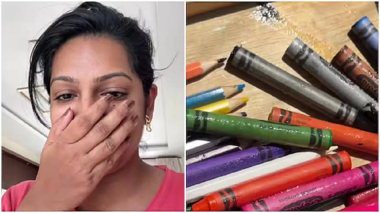 ಬಿಸಿಲಿನ ತಾಪಕ್ಕೆ ಮನೆಯೊಳಗೆ ಕರಗಿದ ಕ್ರಯಾನ್ಸ್ -