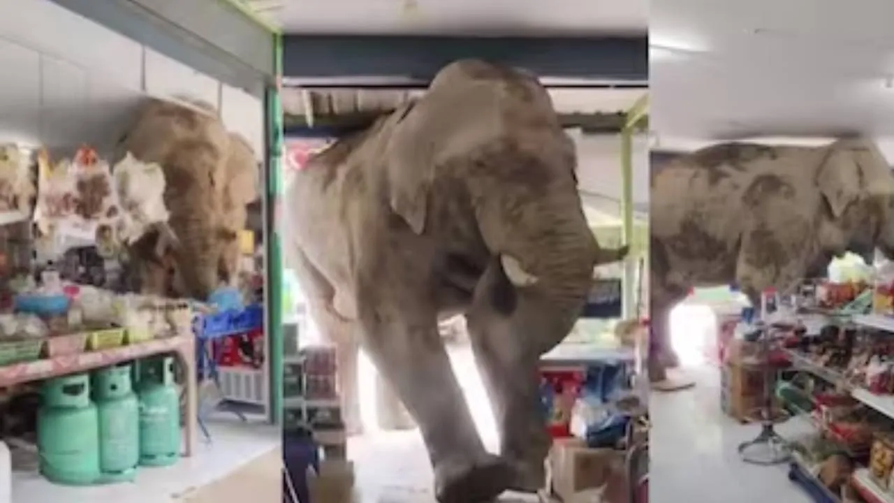 ಥೈಲ್ಯಾಂಡ್ನಲ್ಲಿ ಕಂಡು ಬಂದಿರುವ ಈ ಒಂದು ಅಪರೂಪದ ತಮಾಷೆಯ ವಿಡಿಯೊ ಸಾಮಾಜಿಕ ಜಾಲತಾಣಗಳಲ್ಲಿ ಭಾರಿ ಸದ್ದು ಮಾಡುತ್ತಿದೆ. ಥೈಲ್ಯಾಂಡ್ನ ಖಾವೊಯಾಯ್ ರಾಷ್ಟ್ರೀಯ ಅರಣ್ಯದ ಹತ್ತಿರ ಇರುವ ಅಂಗಡಿಗೆ 'ಪ್ಲಾಯ್ ಬಿಯಾಂಗ್ ತೆಕ್' ಎಂಬ ಹೆಸರಿನ ಕಾಡಾನೆ ನುಗ್ಗಿದೆ. ಸೌಮ್ಯ ಸ್ವಭಾವಕ್ಕೆ ಹೆಸರಾದ ಈ ಆನೆ ಬಹಳ ತಾಳ್ಮೆಯಿಂದ ಅಂಗಡಿಯೊಳಗೆ ನುಗ್ಗಿದೆ.