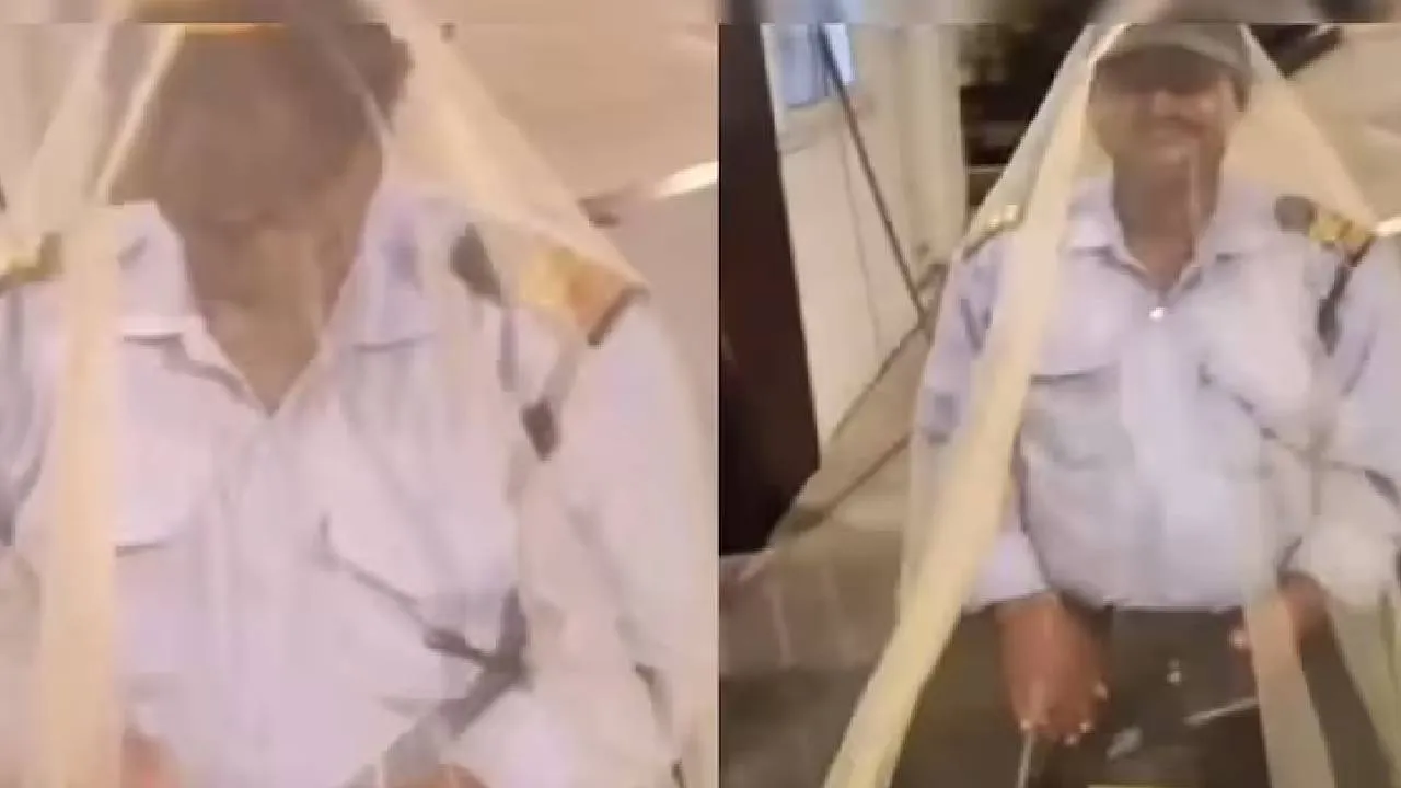 ಸೊಳ್ಳೆ ಪರದೆಯೊಳಗೆ ಕುಳಿತು ಕರ್ತವ್ಯ ನಿರ್ವಹಿಸುತ್ತಿರುವ ಸೆಕ್ಯೂರಿಟಿ ಗಾರ್ಡ್: ವಿಡಿಯೊ ವೈರಲ್