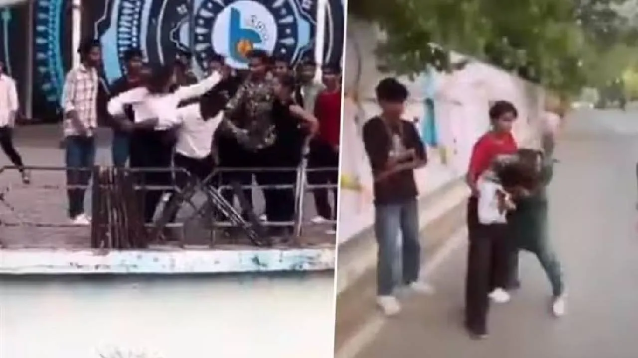 ವೈರಲ್ ಆದ ವಿಡಿಯೊದಲ್ಲಿ, ಇಬ್ಬರು ಹುಡುಗಿಯರು ಪರಸ್ಪರ ನಿಂದಿಸುತ್ತಿರುವುದು, ಕೂದಲು ಎಳೆಯುವುದು ಮತ್ತು ಒಬ್ಬರನೊಬ್ಬರು ಒದೆಯುವುದು ಸೆರೆಯಾಗಿದೆ. ಅಲ್ಲಿದ್ದ ಹುಡುಗರು ಅವರನ್ನು ಬಿಡಿಸಲು ಪ್ರಯತ್ನಿಸಿದರೂ ಅವರಿಬ್ಬರು ಮತ್ತೆ ಮತ್ತೆ ಹೊಡೆದಾಡಿಕೊಂಡಿದ್ದಾರೆ.