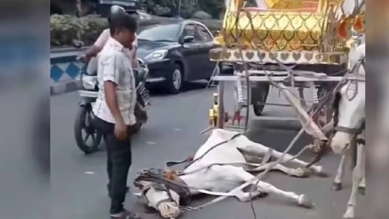 ಕೋಲ್ಕತಾದ ಜನನಿಬಿಡ ರಸ್ತೆಯಲ್ಲಿ ಕುದುರೆಯೊಂದು ಬಿಸಿಲಿನ ತಾಪಕ್ಕೆ ಕುಸಿದು ಬಿದ್ದಿದ್ದು, ಆ ವೇಳೆ ಕರುಣೆ ಇಲ್ಲದ ಕುದುರೆಯ ಮಾಲೀಕ ಅದನ್ನು ಹೊಡೆದು ಮೇಲೆತ್ತಲು ಯತ್ನಿಸಿದ್ದಾನೆ. ಈ ಆಘಾತಕಾರಿ ವಿಡಿಯೊ ಸೋಶಿಯಲ್ ಮೀಡಿಯಾದಲ್ಲಿ ವೈರಲ್(Viral Video) ಆಗಿದ್ದು, ಪ್ರಾಣಿ ಪ್ರಿಯರ ಆಕ್ರೋಶಕ್ಕೆ ಕಾರಣವಾಗಿದೆ.
