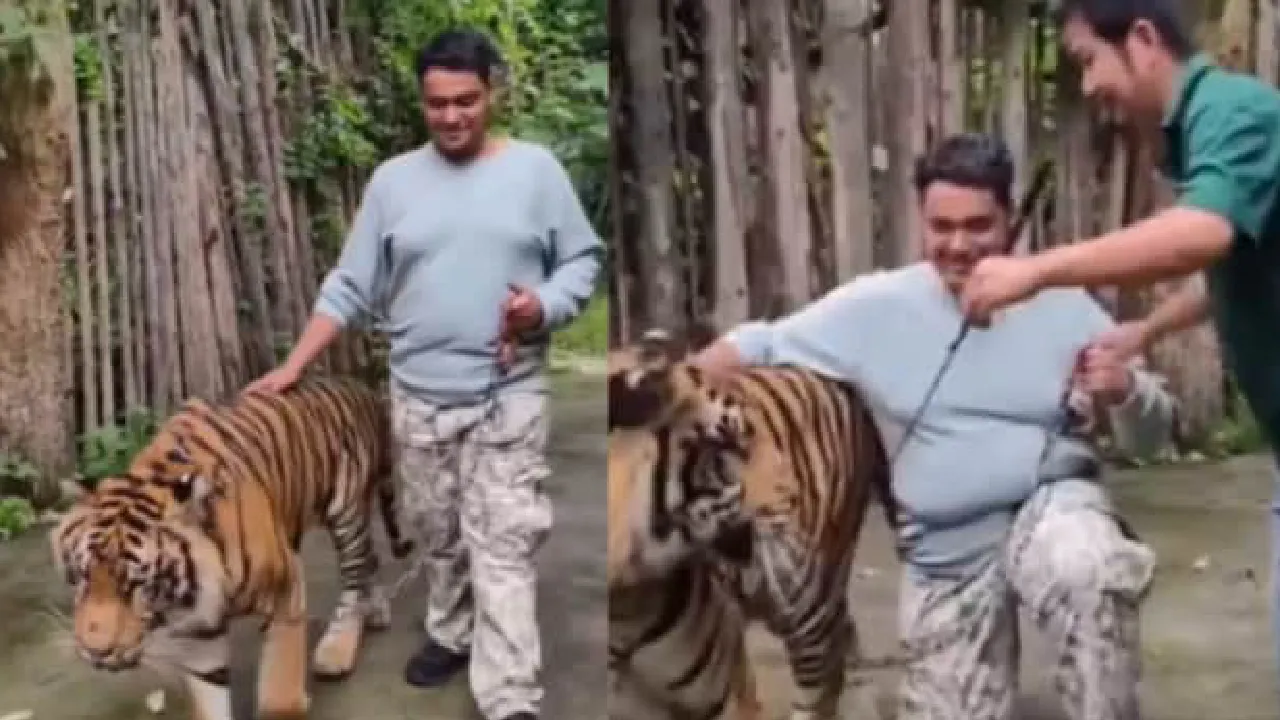 Viral Video: ಫೋಟೋಗೆ ಪೋಸ್ ಕೊಡುತ್ತಿದ್ದ ಭಾರತೀಯ ಪ್ರವಾಸಿಗನ ಮೇಲೆ ಹುಲಿ ದಾಳಿ; ವಿಡಿಯೋ ವೈರಲ್